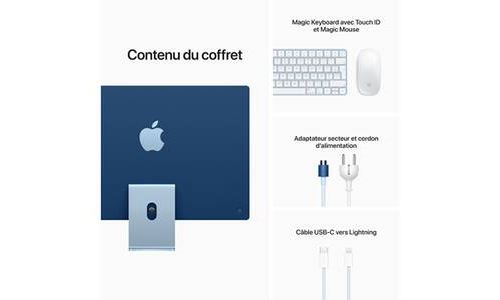 CPU 8 cœurs avec 4 cœurs de performance et 4 cœurs à haute efficacité énergétique; Configurable avec 1 ou 2 To; Caméra FaceTime HD 1080p avec le processeur de signal d’image de la puce M1; Prise en charge simultanée de la résolution native sur l’écran intégré d’un milliard de couleurs et de : Un écran externe d’une résolution atteignant 6K à 60 Hz; Sortie vidéo numérique Thunderbolt 3; Sortie DisplayPort native par USB‑C; Sorties VGA, HDMI, DVI et Thunderbolt 2 prises en charge à l’aide d’adaptateurs (vendus séparément); Son stéréo ample; Prise en charge de l’audio spatial lors de la lecture de vidéo avec Dolby Atmos; Icône Ensemble de trois micros de qualité studio; Ensemble de trois micros de qualité studio avec rapport signal sur bruit élevé et beamforming directionnel; Icône Prise en charge de « Dis Siri »Prise en charge de « Dis Siri »; Tension : de 100 à 240 V CA; Fréquence : de 50 à 60 Hz, monophasé; Température d’utilisation : de 10 à 35 °C; Humidité relative : de 5 à 90 % sans condensation; Altitude maximale : testé jusqu’à 5 000 mètres; Fonctionnalités incluses : Contrôle vocale, VoiceOver, Zoom, Augmenter le contraste, Réduire les animations, Siri et Dictée, Contrôle de sélection, Sous‑titres codés, Synthèse vocale