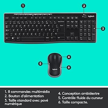 CLAVIER +SOURI SANS FIL Logitech Mk235