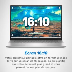 Ordinateur portable Inspiron 16 est équipé d’un système audio spatial exceptionnel et d’un écran spacieux de 16 pouces au format d’image 16:10.