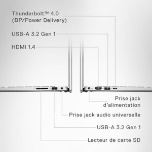 • Processeur Intel Core i5-1340P de 13e génération (cache 12 Mo, jusqu‘à 4,60 GHz Turbo)